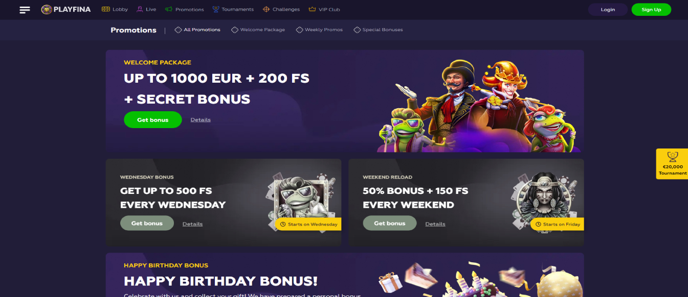 To start playing your favorite games at Playfina, you must create a personal account. After that, you can access all the site's functionality Unlocking Playfina's Sign-Up Bonus - Unveiling Exclusive Tips and Tricks! Playfina Casino Review - No Deposit, Free Spins And Best Playfina Casino How to Start Up to 1000€ + 200 FS + Secret Bonus!!! You instantly get presented with the casino's primary services and listed games, as well as its live casino section...